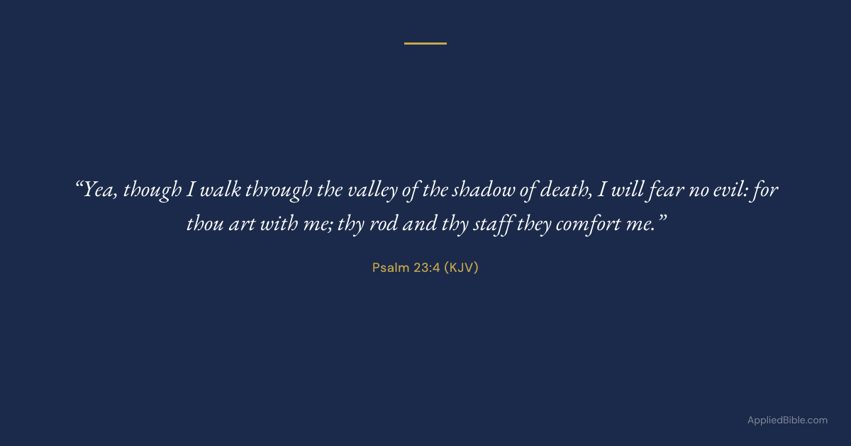 "Yea, though I walk through the valley of the shadow of death, I will fear no evil: for thou art with me; thy rod and thy staff they comfort me."